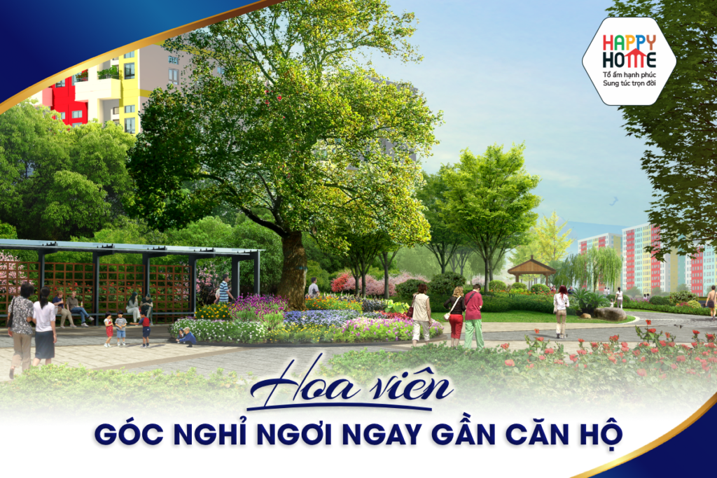 Cư dân không cần đi xa để tìm chỗ thư giãn, vì trong phân khu Happy Home đã có đến 06 hoa viên xanh mát. Buổi sáng, người lớn thong thả đi bộ hít thở khí trời; trẻ nhỏ ríu rít vui đùa ở khoảng sân an toàn. Những khoảng xanh nhỏ bé ấy trở thành nơi kết nối gia đình, hàng xóm và mang lại sự bình yên giữa đời sống hiện đại.