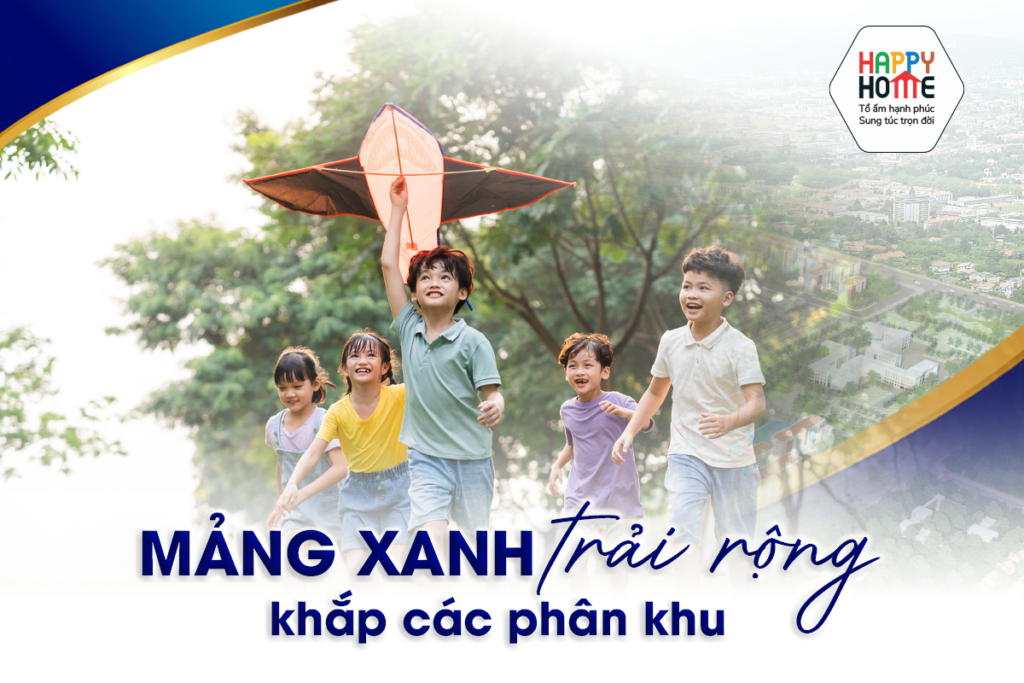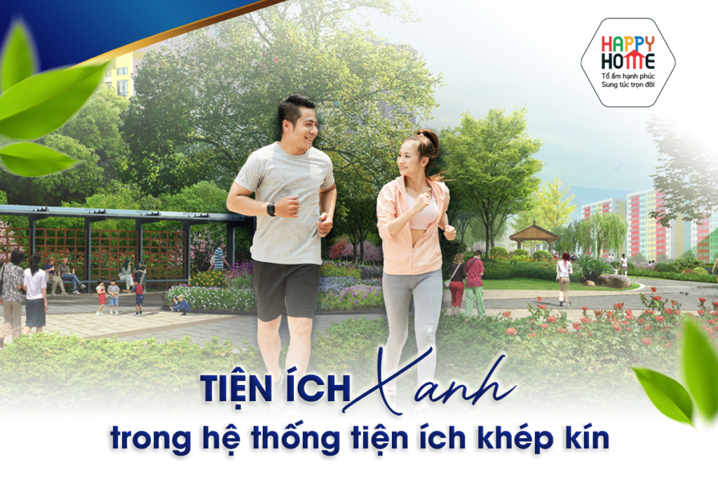 Với thiết kế ưu tiên mảng xanh, Happy Home mang đến môi trường sống bền vững, giảm thiểu tác động của nhiệt độ đô thị và cải thiện chất lượng không khí. Đây là yếu tố quan trọng với những gia đình muốn gắn bó lâu dài, đặc biệt là gia đình có trẻ nhỏ và người cao tuổi.