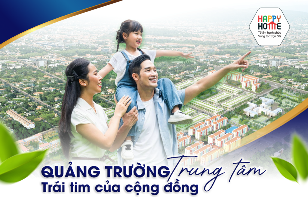 Nằm ở vị trí trung tâm của Happy Home là quảng trường rộng lớn, nơi diễn ra nhiều hoạt động cộng đồng và sự kiện quan trọng. Đây là không gian mở, được lát đá sạch sẽ, bao quanh bởi hàng cây và ghế nghỉ, tạo cảm giác vừa hiện đại vừa gần gũi.
